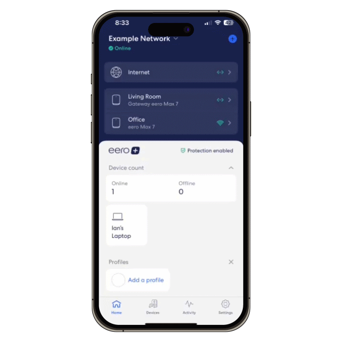 See your connection speed, find out which devices are on your network, and make sure each eero is working properly (but trust us, it would be weird if they weren’t).